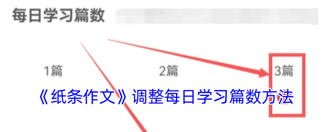 以上是關(guān)于如何調(diào)整《紙條作文》每日學(xué)習(xí)篇數(shù)的操作步驟。更多相關(guān)教程和資訊,請(qǐng)繼續(xù)關(guān)注我們的網(wǎng)站。