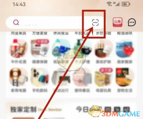 1、啟動1號會員店APP,點擊搜索框右側(cè)的掃一掃圖標。