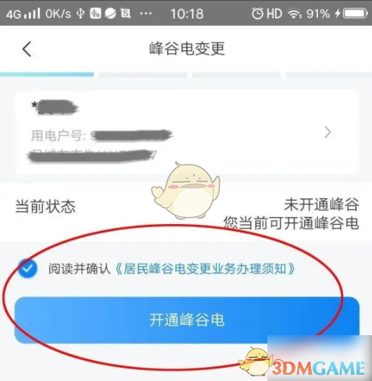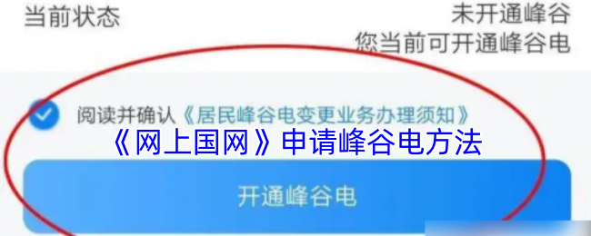 5、確認并閱讀《居民峰谷電變更業(yè)務(wù)辦理須知》等相關(guān)內(nèi)容后,點擊“開通峰谷電”,即可完成申請。