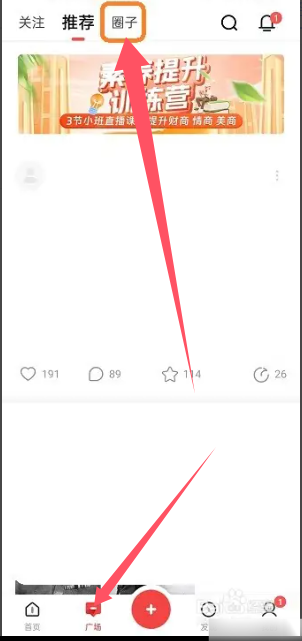 1、首先打開全知識APP,進入首頁并點擊【廣場】。