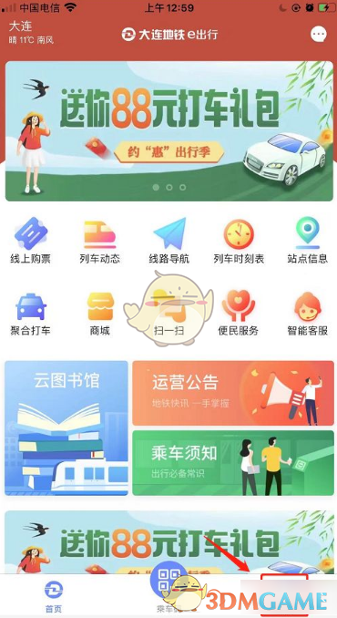 1、首先打開大連地鐵e出行App,點(diǎn)擊底部導(dǎo)航欄中的“我的”選項(xiàng)。