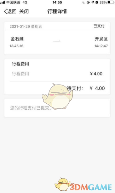 3、在頁面中,你將看到“行程中”的未支付賬單,點(diǎn)擊其中一項(xiàng)可以查看更詳細(xì)的信息。
