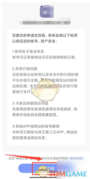 4、在注銷賬號頁面中,點擊【申請注銷】按鈕。