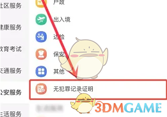3、最后,在頁(yè)面中選擇“無犯罪記錄證明”選項(xiàng)即可進(jìn)行申請(qǐng)。