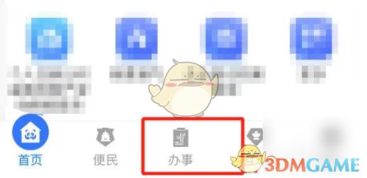 1、首先,打開天府通辦APP的【首頁(yè)】,點(diǎn)擊【辦事】進(jìn)入