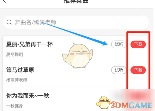 5、在推薦舞曲列表中,選擇您喜歡的舞曲并點(diǎn)擊“下載”按鈕。