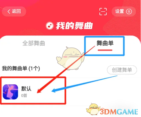 2、在“舞曲單”頁(yè)面中,點(diǎn)擊默認(rèn)的歌單。