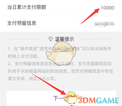 6、修改所需的限額金額后,點(diǎn)擊“下一步”繼續(xù)。