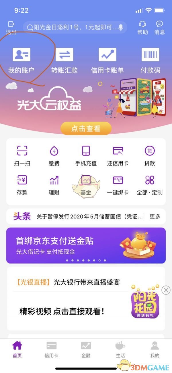 1、首先確保光大銀行App已更新至最新版本,進入“我的賬戶”頁面