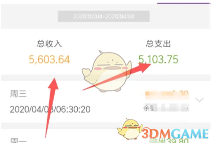 6、系統(tǒng)會(huì)顯示該時(shí)間段內(nèi)的所有收入、支出記錄以及詳細(xì)的交易明細(xì)。