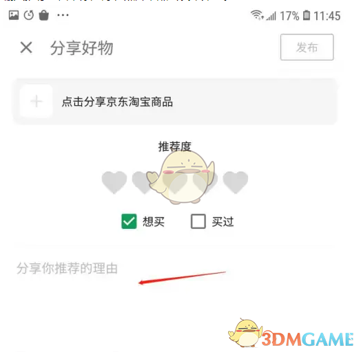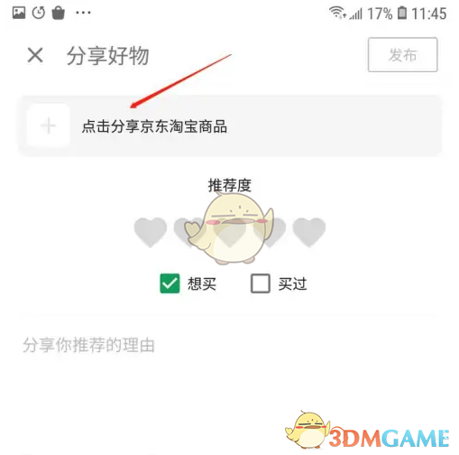 4、填寫推薦理由,上傳商品照片,點擊發(fā)布按鈕就完成了。