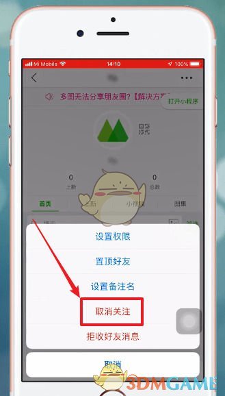 3、在彈出的選項(xiàng)中,點(diǎn)擊【取消關(guān)注】即可完成操作。
