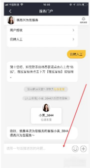 4、在輸入框中輸入“人工客服”,然后點(diǎn)擊發(fā)送。