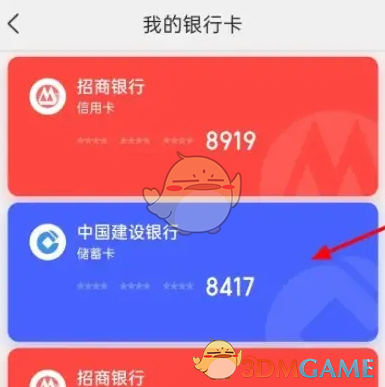 3、在銀行卡頁面中,選擇一張已綁定的銀行卡。