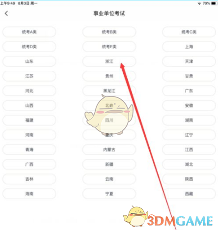 5、接下來,在事業(yè)單位考試中選擇相應(yīng)的地區(qū)并點擊。