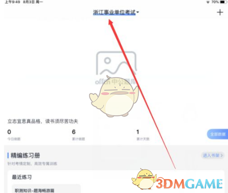 7、你可以在頁面頂部點擊當(dāng)前考試類型,彈出菜單后即可選擇其他考試題庫進(jìn)行切換。