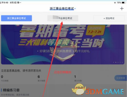2、進(jìn)入APP后,在頁面頂部找到當(dāng)前的默認(rèn)考試并點擊它。