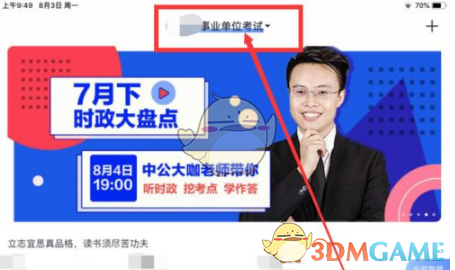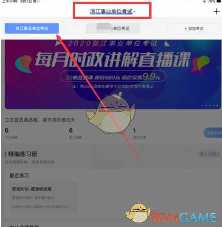 2、進(jìn)入后,你會看到頁面上方顯示的默認(rèn)考試類型,點擊它。