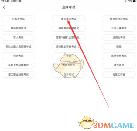 4、進(jìn)入后,你可以選擇自己需要的考試類型,這里以事業(yè)單位考試為例,點擊確認(rèn)。