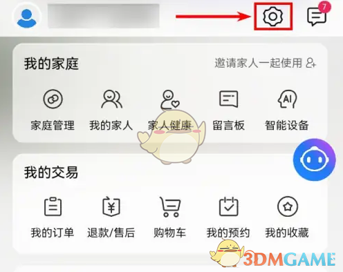 2、進入“我的”頁面后,點擊賬號旁的設(shè)置按鈕。