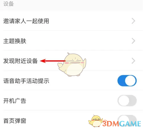 3、在設(shè)置頁面中,選擇“發(fā)現(xiàn)附近設(shè)備”選項。