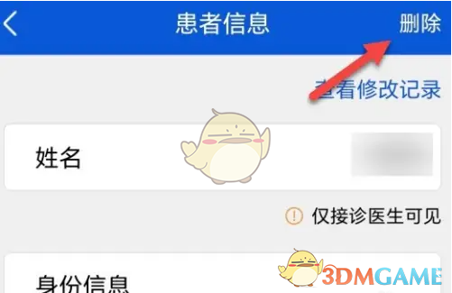3、在患者信息頁面中,點(diǎn)擊右上角的“刪除”選項(xiàng)。