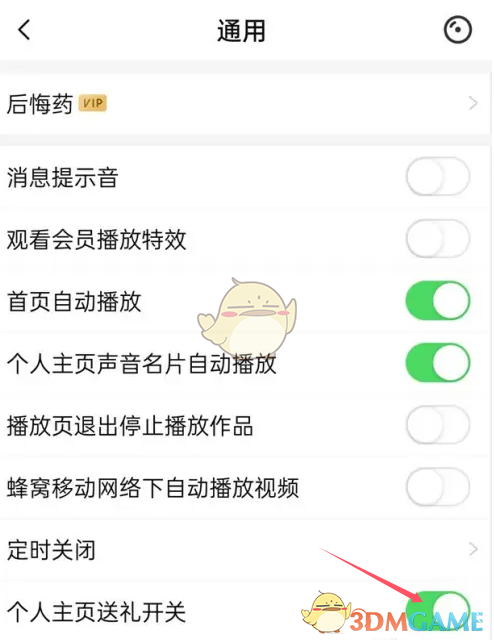 4、將“個人主頁送禮開關(guān)”旁的小滑塊滑動至打開位置即可。