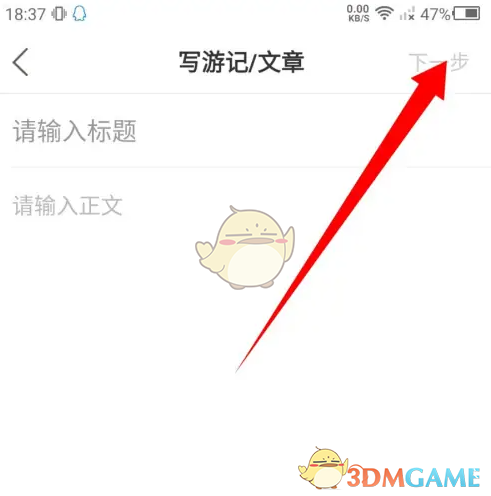 3、編輯好游記內(nèi)容后,點(diǎn)擊頁面右上角的“下一步”按鈕。