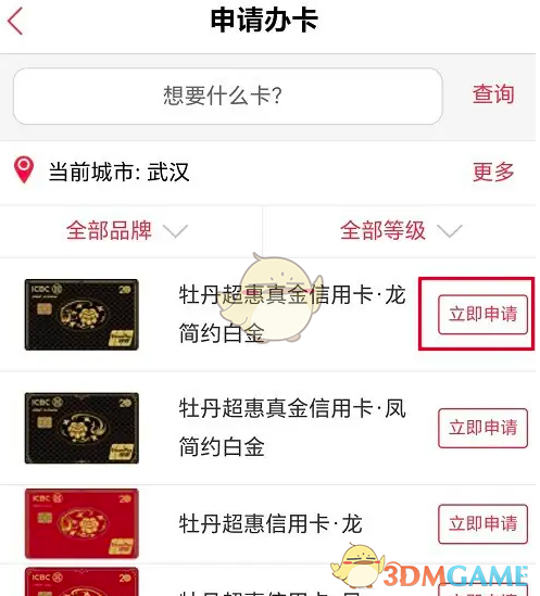 2、進(jìn)入申請(qǐng)辦卡頁(yè)面后,選擇合適的信用卡類型,點(diǎn)擊“立即申請(qǐng)”按鈕。