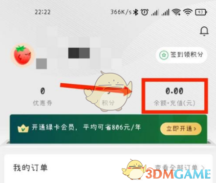 1、首先在叮咚買菜APP的“我的”頁面點(diǎn)擊“余額充值”選項。