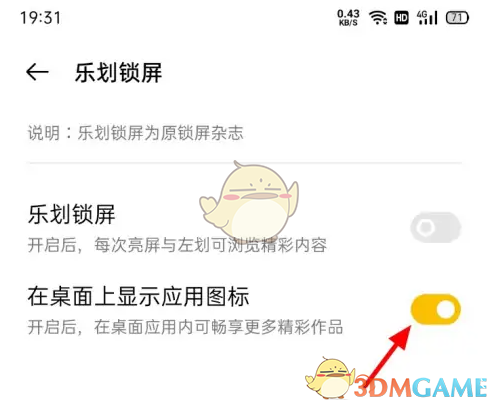4、進(jìn)入樂(lè)劃鎖屏界面后,關(guān)閉【在桌面上顯示應(yīng)用圖標(biāo)】選項(xiàng);