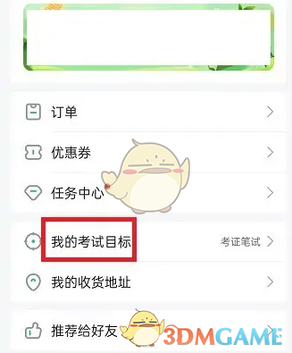 2、進(jìn)入個人主頁后,點(diǎn)擊“我的考試目標(biāo)”按鈕。