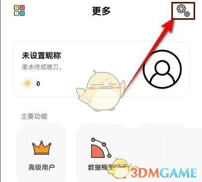 1、首先打開(kāi)小日常APP,進(jìn)入右下角的“更多”選項(xiàng),然后點(diǎn)擊右上角的“設(shè)置”按鈕。