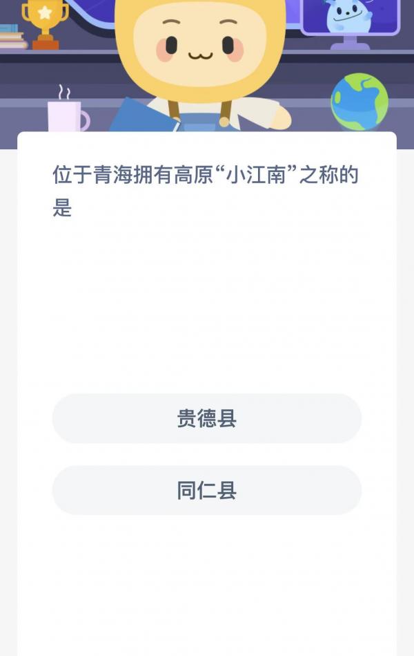2022年6月23日,支付寶螞蟻莊園的題目是:青海省內(nèi),素有“高原小江南”之稱的是哪一縣?是貴德縣還是同仁縣呢?可能很多朋友還不太了解,接下來小編為大家?guī)碚_答案,希望對大家有所幫助。