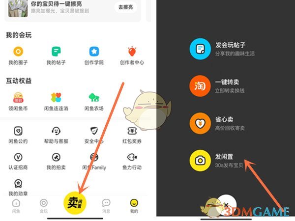 1、首先打開閑魚APP,進入“賣閑置”頁面,然后點擊“發(fā)閑置”按鈕。