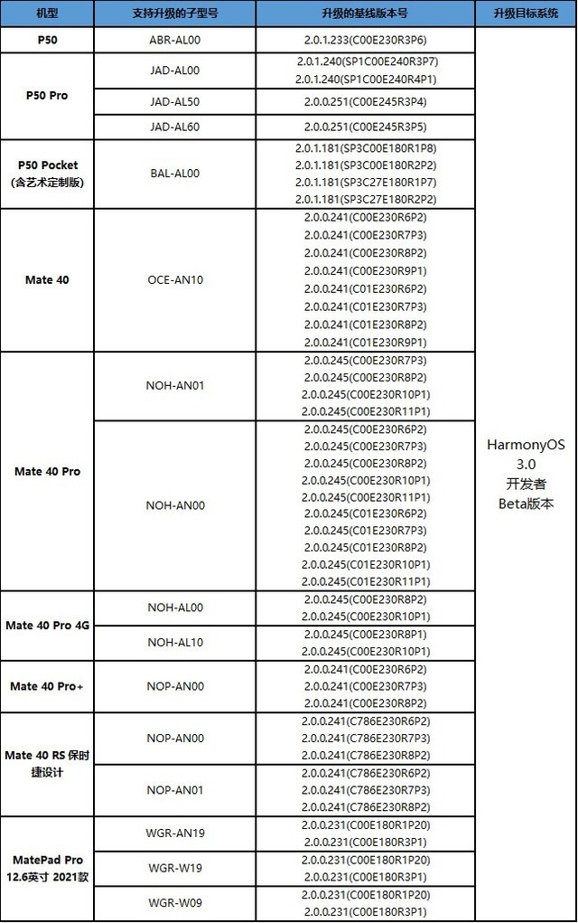 鴻蒙3.0開發(fā)者Beta支持的設(shè)備: