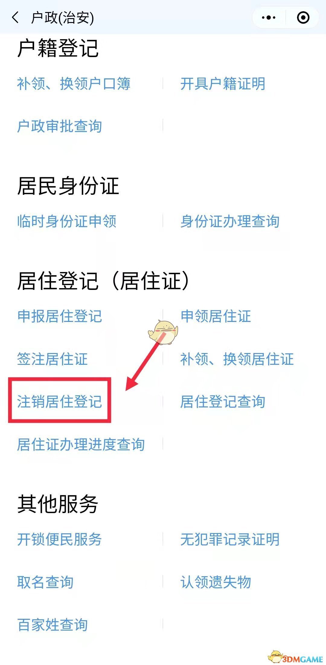 3、在【戶政(治安)】頁面中,選擇【居住登記(居住證)】—【注銷居住登記】選項,如下圖所示: