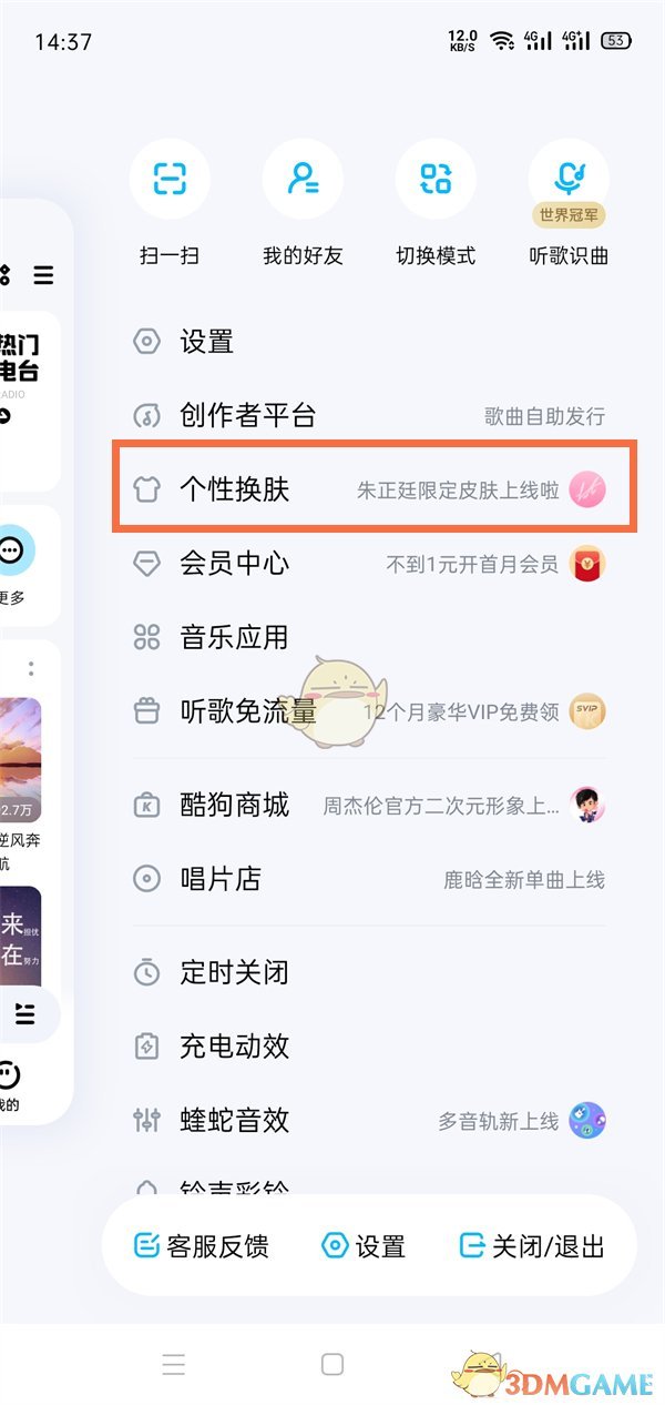 《酷狗音樂》設置黑白背景方法