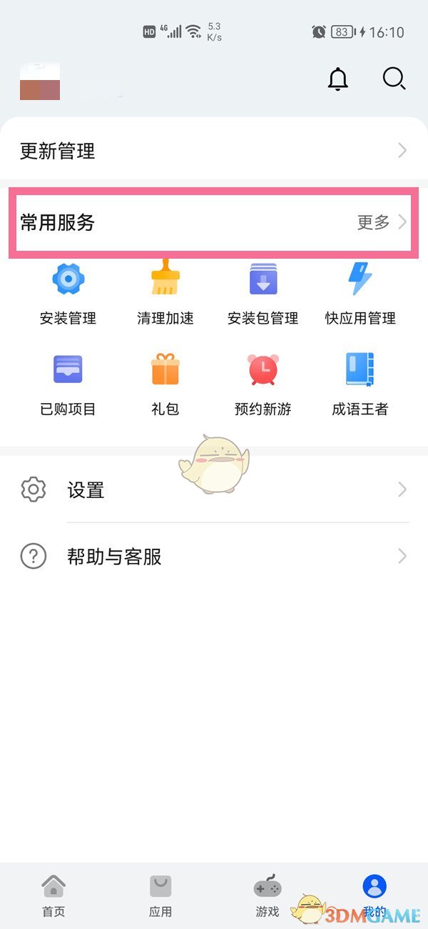 1. 打開(kāi)手機(jī)上的應(yīng)用市場(chǎng),進(jìn)入“我的”頁(yè)面,找到“常用服務(wù)”欄目,點(diǎn)擊右側(cè)的“更多”按鈕。