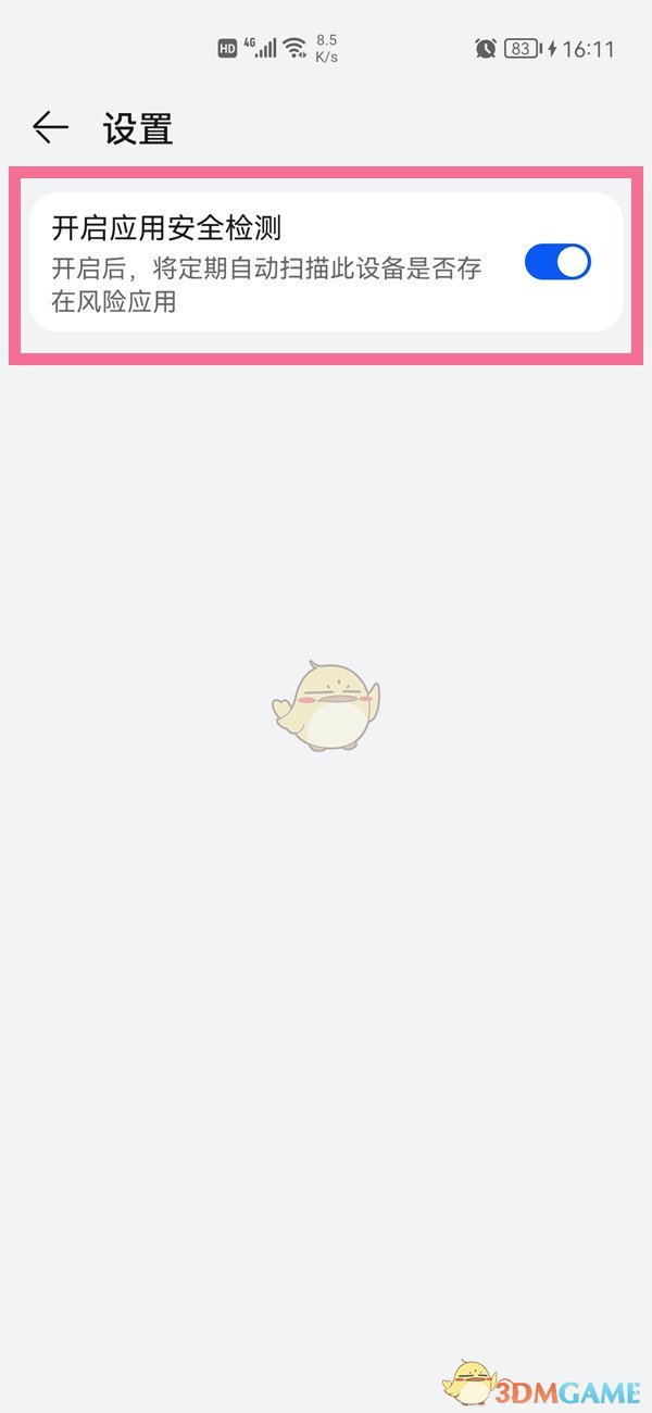 3. 點(diǎn)擊右上角的“設(shè)置”按鈕,將“開(kāi)啟應(yīng)用安全檢測(cè)”旁的開(kāi)關(guān)關(guān)閉即可。