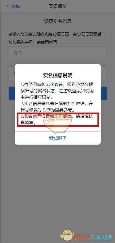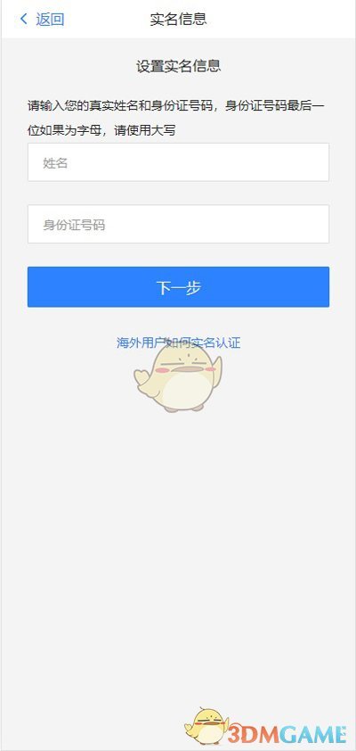 2、在實(shí)名信息界面,根據(jù)提示輸入相關(guān)的實(shí)名信息。