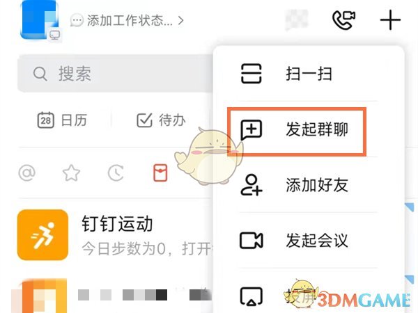1、打開釘釘App,在消息頁面點(diǎn)擊右上角的+號,然后選擇發(fā)起群聊。