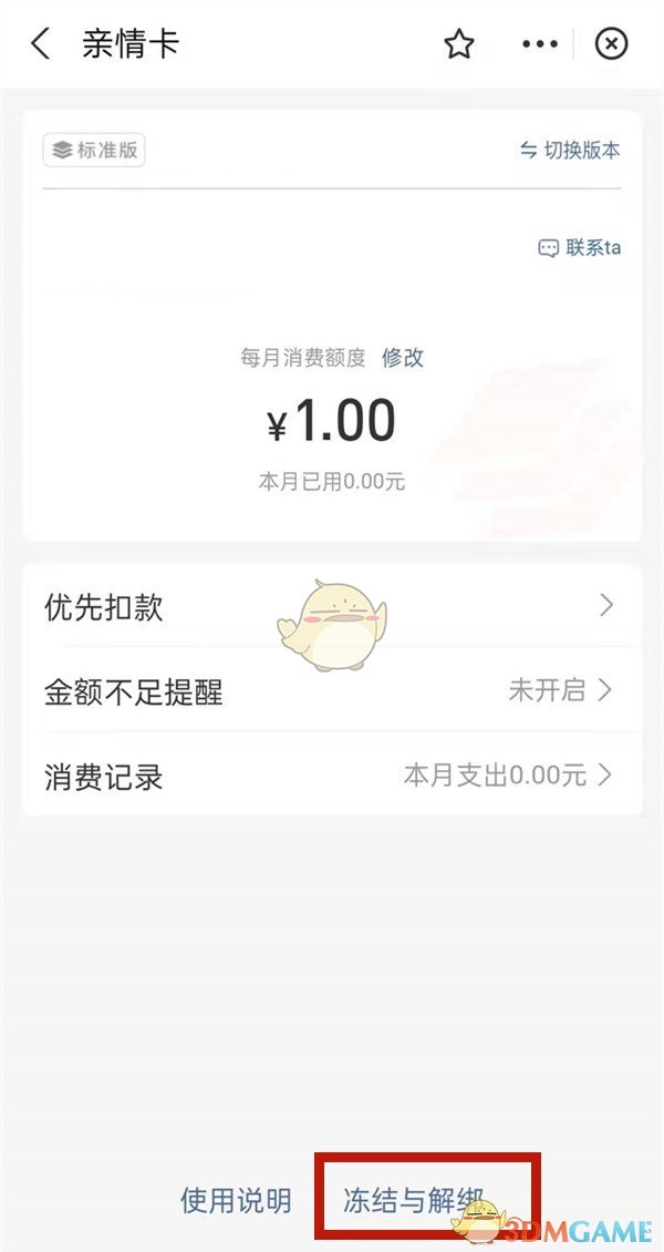 3、在頁面中選擇【凍結(jié)與解綁】按鈕,并按照提示確認解綁操作即可。