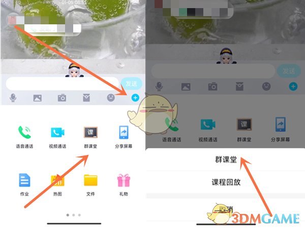 1、首先打開手機QQ,進入群聊頁面,點擊群課堂選項,然后在彈出的窗口中再次點擊群課堂。
