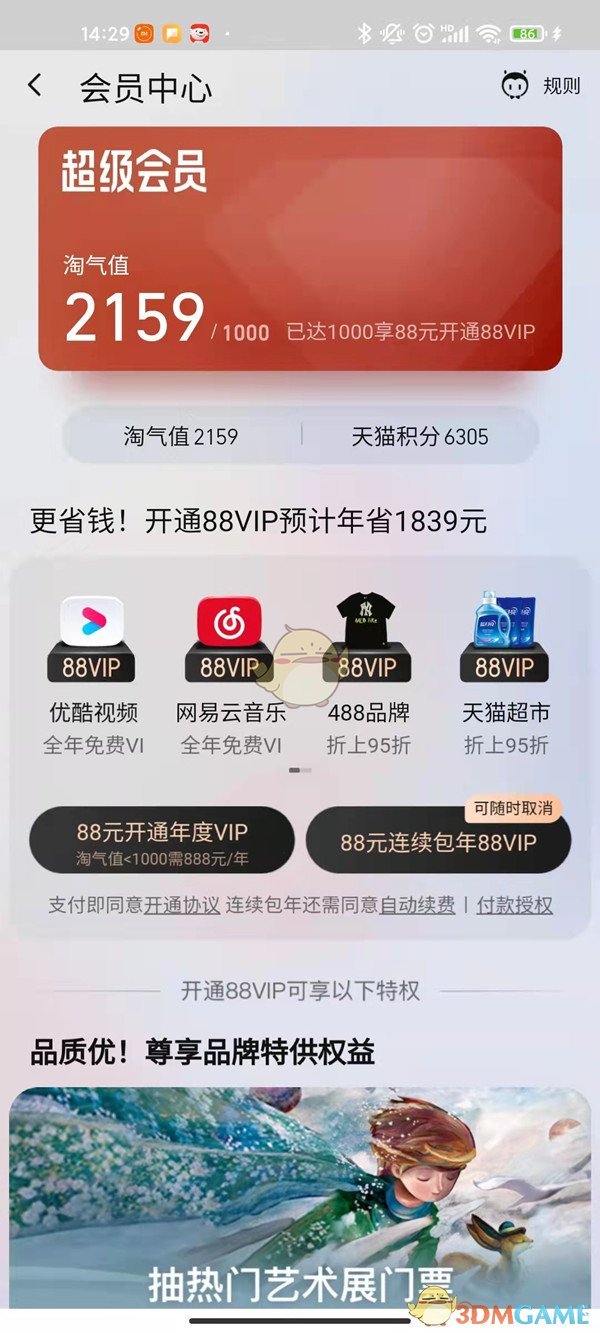 1、首先打開(kāi)淘寶,進(jìn)入“我的淘寶”頁(yè)面,點(diǎn)擊【會(huì)員中心】。
