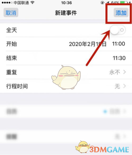 4、進入新建事件頁面后,點擊右上角的“添加”按鈕。