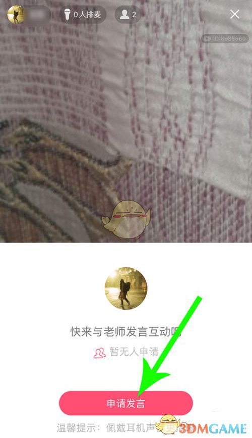 3、接著找到【申請發(fā)言】按鈕,提交后等待老師的批準(zhǔn)即可。