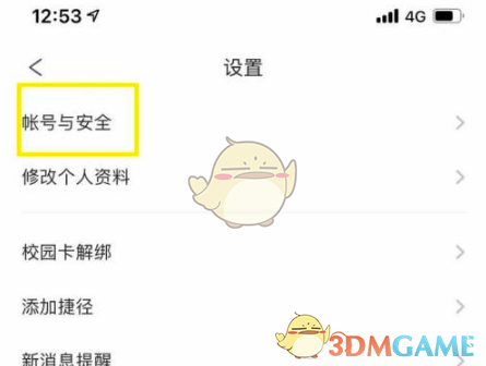 3、在設(shè)置頁面中,選擇“賬號與安全”選項。