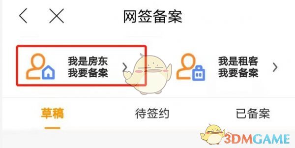 2、點擊“我是房東我要備案”按鈕。房東可以選擇自己名下出租的房屋信息進行備案,租客則需要填寫房屋產(chǎn)權(quán)信息,之后繼續(xù)到下一步操作。(在簽約備案時,可以選擇任意方式進行簽約,但請不要同時操作兩種方式。)