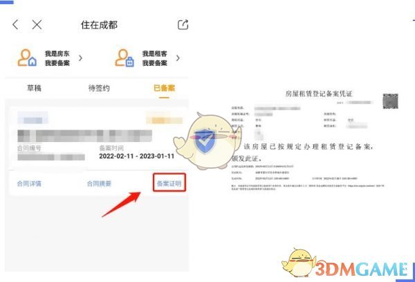 5、簽約完成后,系統(tǒng)會自動審核備案,用戶可以點擊查看“備案證明”,并將其保存至手機,便于打印和使用。